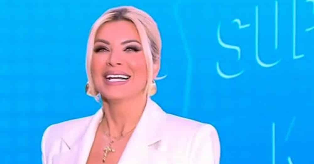 Ντυμένη στα μαύρα, με λευκό σακάκι η παρουσιάστρια του Alpha παρατηρώντας την εικόνα της στο μόνιτορ, σχολίασε: Κοιτάω το πλάνο μου και βλέπω ότι έχω παχύνει, είπε η Κατερίνα Καινούργιου.