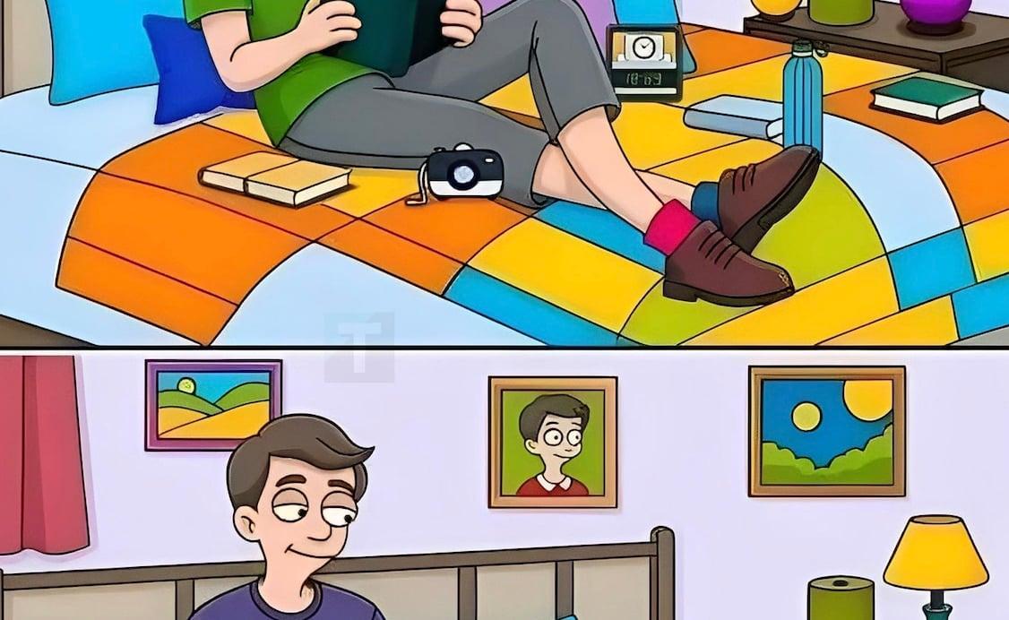 Με την πρώτη ματιά, οι δύο εικόνες φαίνονται ολόιδιες — ένας νεαρός άνδρας χαλαρώνει στο κρεβάτι του, απορροφημένος από ένα βιβλίο.