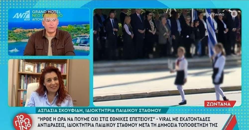 ηλεοπτική κόντρα ξέσπασε ανάμεσα στον Σταύρο Μπαλάσκα και μια ιδιοκτήτρια παιδικού σταθμού και εκπαιδευτικού, η οποία αμφισβήτησε τον εορτασμό των εθνικών επετείων σε μικρά παιδιά.