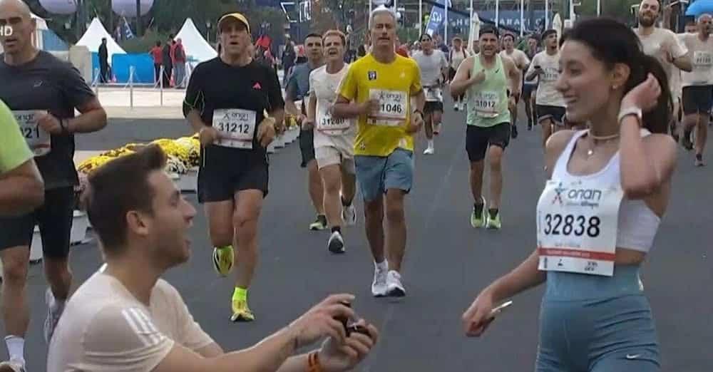 Μέσα στο κλίμα συγκίνησης και ενθουσιασμού των Αγώνων Δρόμου, ο δρομέας γονάτισε και αποκάλυψε το δαχτυλίδι την ώρα που η αγαπημένη του τερμάτιζε στο ιστορικό Παναθηναϊκό Στάδιο, εκεί όπου κάθε χρόνο χτυπά δυνατά η καρδιά του αυθεντικού Μαραθωνίου.