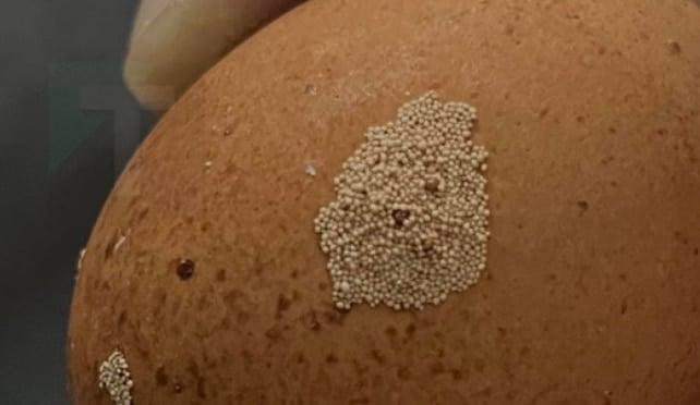 Αυτό που βλέπεις πάνω στο αυγό είναι πολύ πιθανό να είναι αυγά εντόμων.