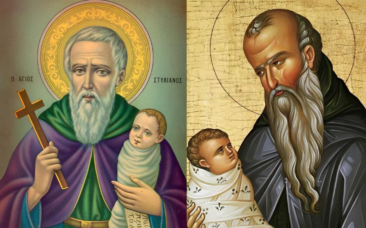Άγιος Στυλιανός: Ο Άγιος Στυλιανός, τη μνήμη του οποίου τιμά η Εκκλησία στις 26 Νοεμβρίου έκαστους έτους, εικονογραφείται με ένα νήπιο σπαργανωμένο στην αγκαλιά του, γεγονός που συμβολίζει ότι είναι ο προστάτης των νηπίων.