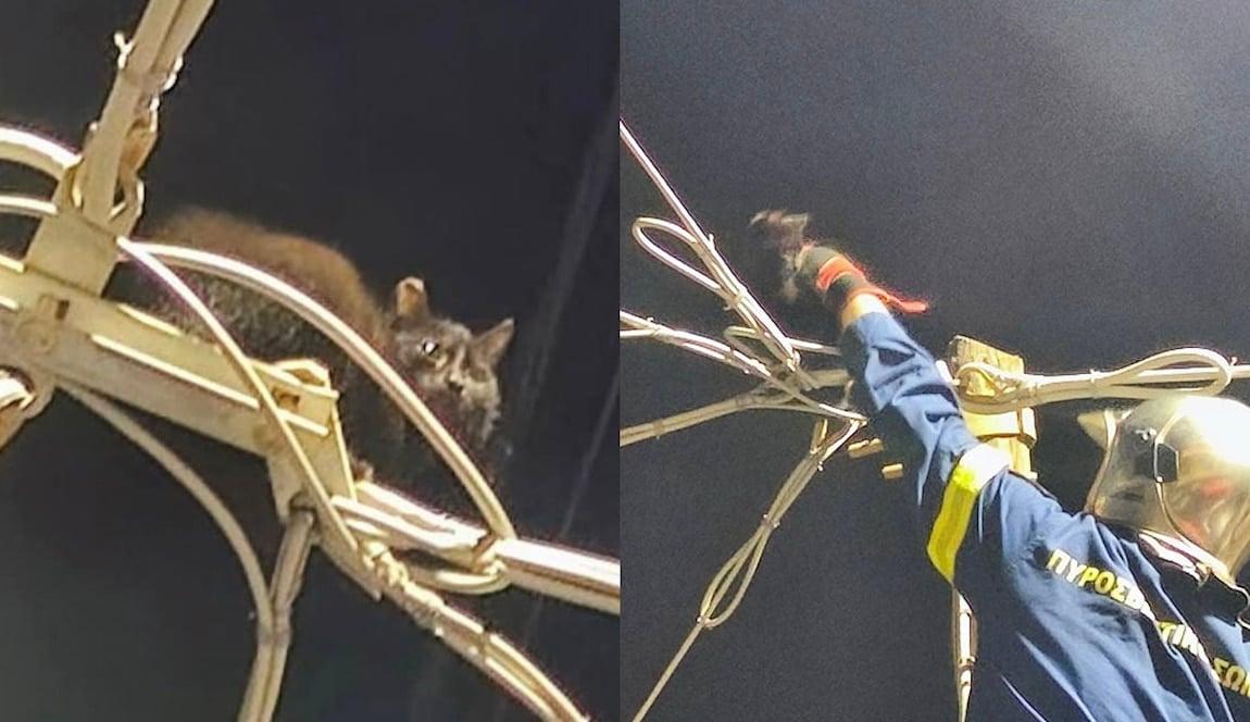 Πυροσβέστες έσωσαν γατάκι που είχε σκαρφαλώσει σε κολώνα του ΟΤΕ