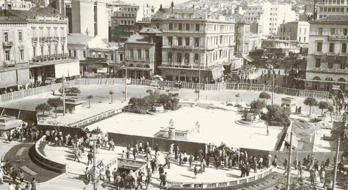 Στη φωτογραφία που έχει τραβηχτεί το 1957 βλέπετε τα έργα αναμόρφωσης της πλατείας Ομονοίας.