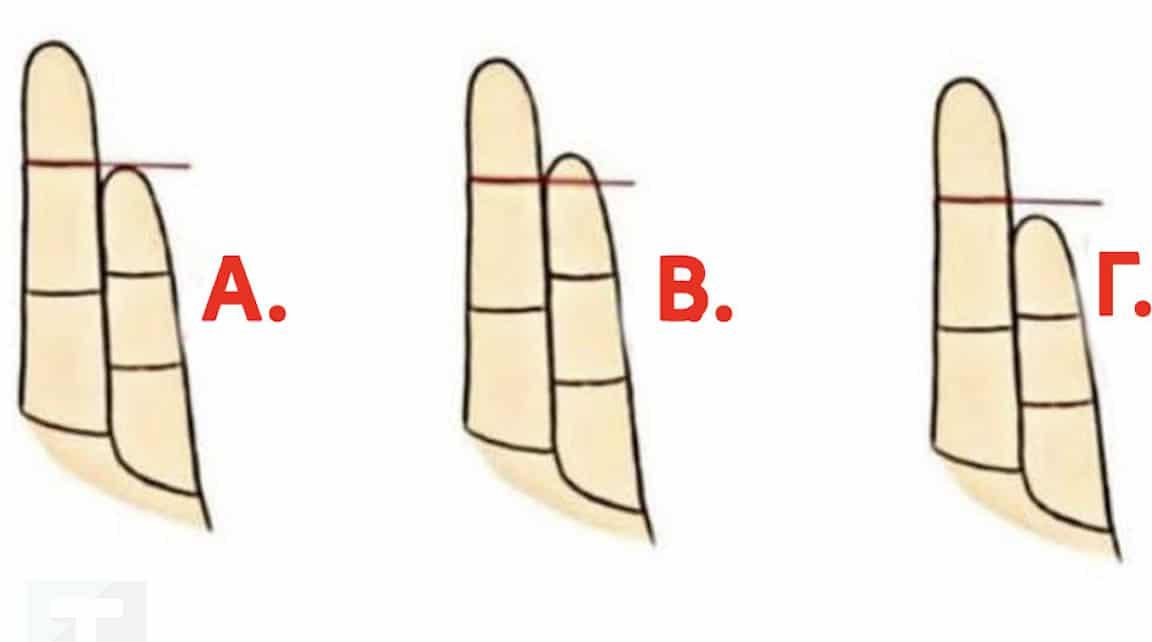 Η δοκιμή είναι πολύ απλή: κοίτα το χέρι σου και σύγκρινε το μήκος του μικρού δαχτύλου με το ύψος της τελευταίας άρθρωσης του παράμεσου. Υπάρχουν τρεις περιπτώσεις… και τρία διαφορετικά «πορτρέτα».