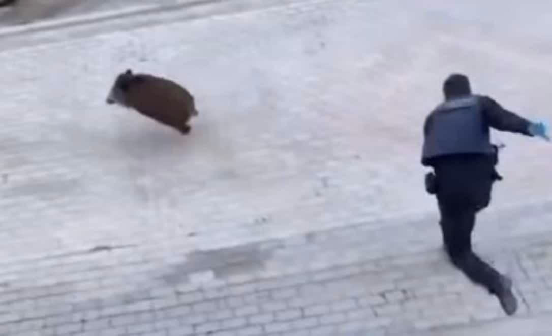 Το αγριογούρουνο δεν ήταν… συνεργάσιμο και οι αστυνομικοί τα βρήκαν σκούρα απέναντί του.