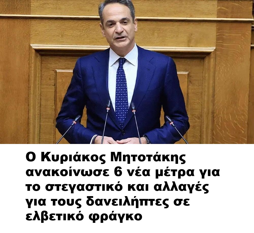 Ο πρωθυπουργός ανακοίνωσε 6 μέτρα για την αντιμετώπιση της στεγαστικής κρίσης – Κατατίθεται η ρύθμιση για τους δανειολήπτες σε ελβετικό φράγκο: Οι υποχρεώσεις τους θα μετατραπούν σε ευρώ με σταθερό χαμηλό επιτόκιο, θα προβλέπεται και κούρεμα