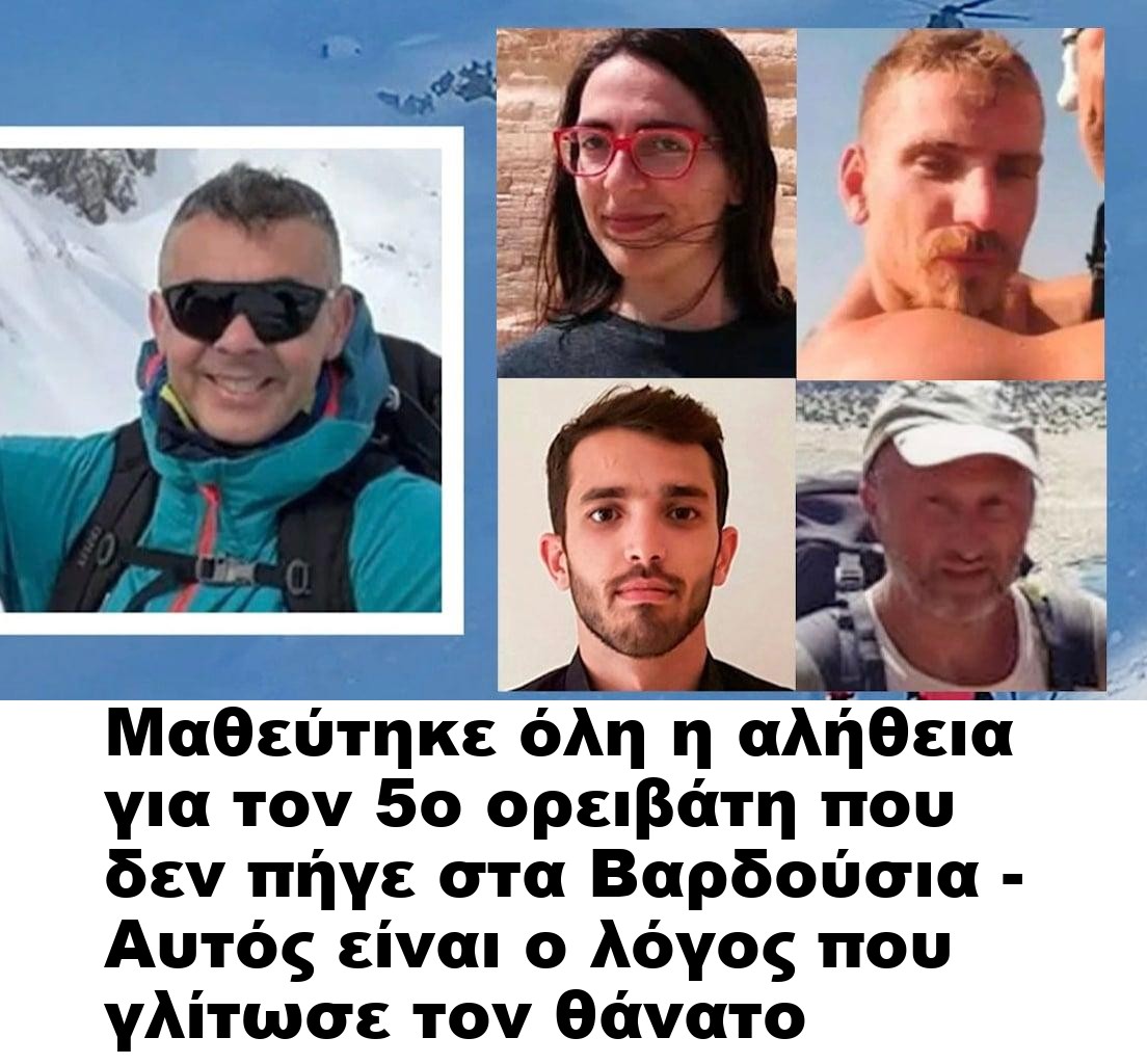 Μαθεύτηκε όλη η αλήθεια για τον 5ο ορειβάτη που δεν πήγε στα Βαρδούσια – Αυτός είναι ο λόγος που γλίτωσε τον θάνατο