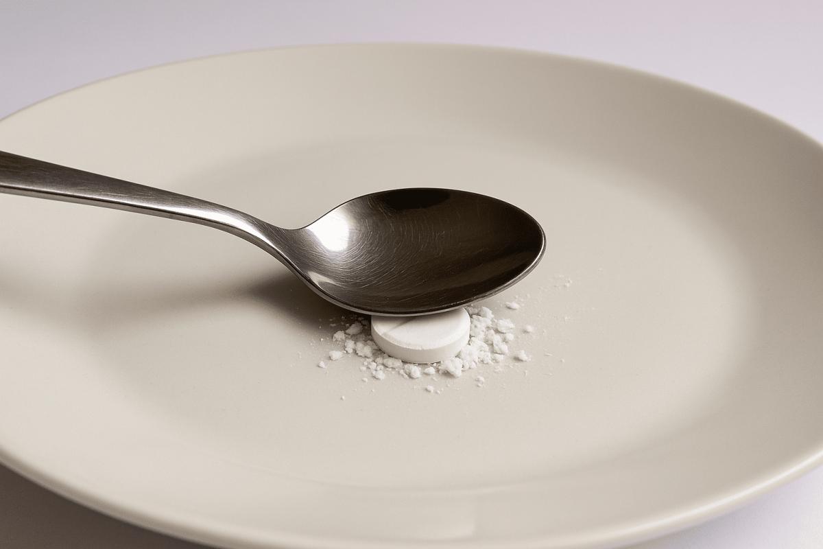 Λιώστε ένα δισκίο και αναμείξτε το με λίγες σταγόνες νερό.