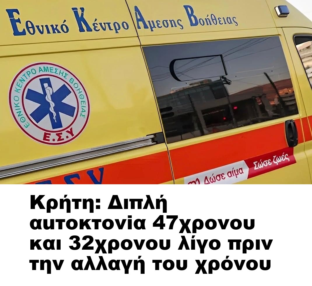 Βαθιά θλίψη και σοκ προκαλούν τα δύο τραγικά περιστατικά που σημειώθηκαν μέσα σε λίγες ώρες στην Κρήτη, λίγο πριν την έλευση του νέου έτους, προσθέτοντας ακόμη δύο ονόματα στη μακρά και ανησυχητική λίστα των αυτοκτονιών.