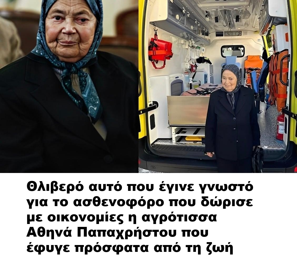 Θλιβερό αυτό που έγινε γνωστό για το ασθενοφόρο που δώρισε με οικονομίες η αγρότισσα Αθηνά Παπαχρήστου που έφυγε πρόσφατα από τη ζωή