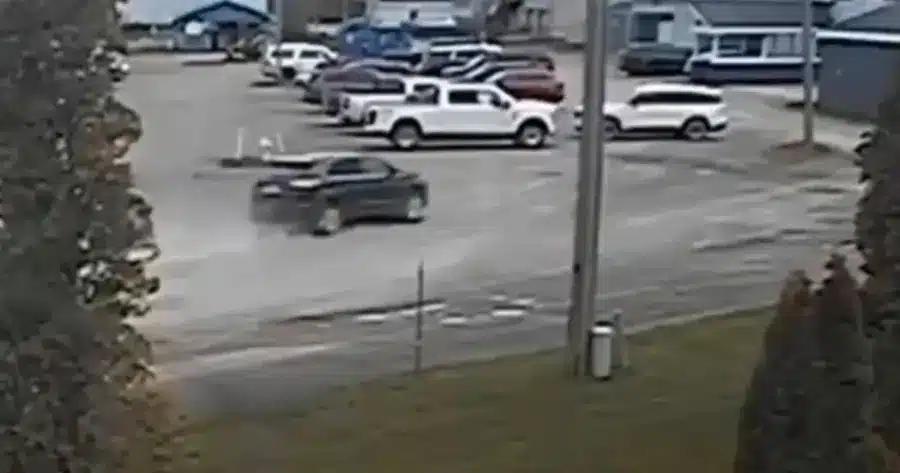 Βίντεο δείχνει το μπλε SUV της γυναίκας να περνάει με ταχύτητα μέσα από το πάρκινγκ του κλαμπ και να χτυπά τον πίσω τοίχο του κτιρίου.