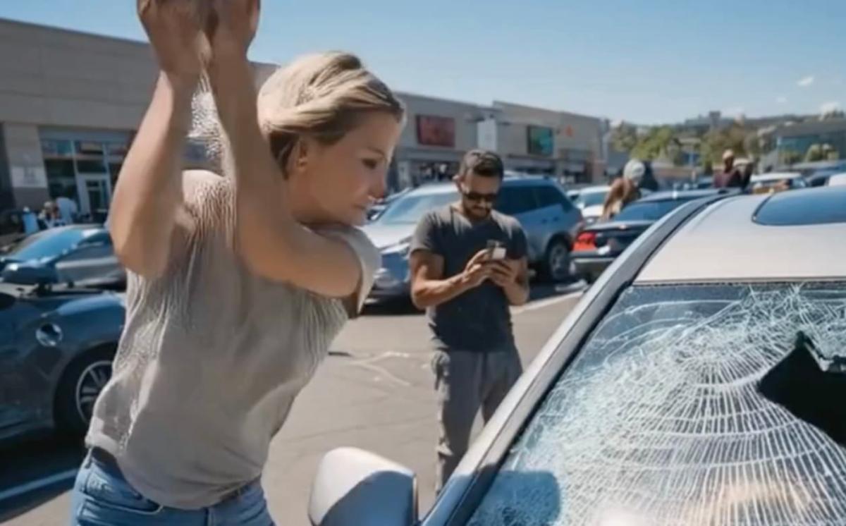 «Τι στο διάολο νομίζεις ότι κάνεις;» φώναξε. «Αυτό είναι το αμάξι μου, έσπασες το τζάμι μου! Θα καλέσω την αστυνομία!»
