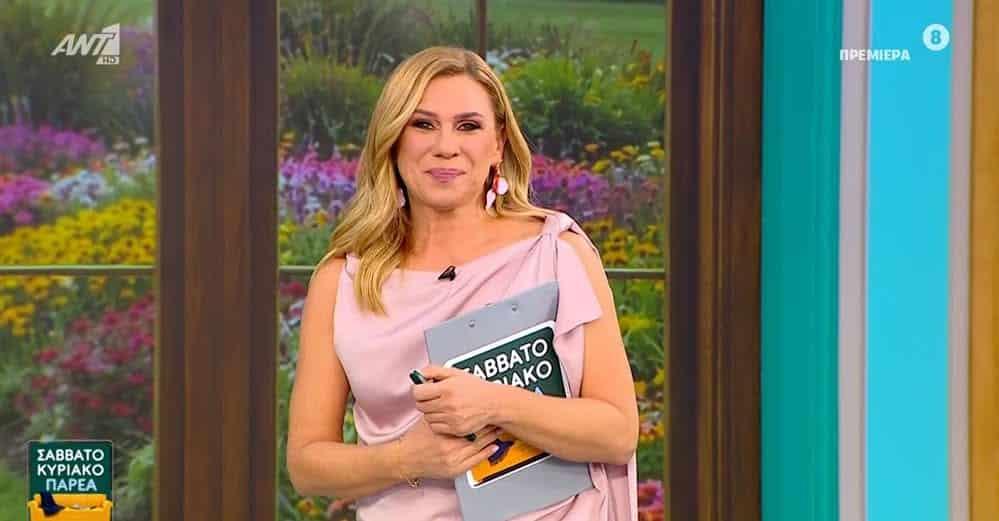 Πρεμιέρα έκανε χθες (31/1) η Κατερίνα Καραβάτου με τη νέα εκπομπή «Σαββατοκύριακο παρέα», η οποία αντικατέστησε ουσιαστικά το «Πρωινό Σαββατοκύριακο» της Ελένης Τσολάκη στον ΑΝΤ1.