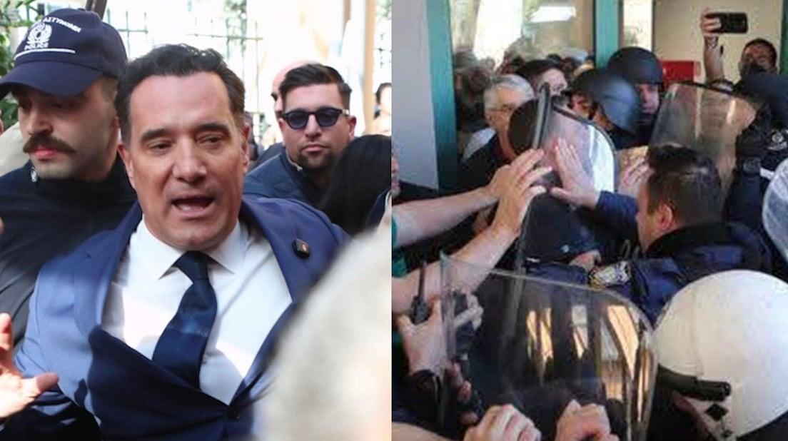 Δείτε βίντεο και φωτογραφίες – Μέλη της ΑΝΤΑΡΣΥΑ και του ΚΚΕ προκάλεσαν τα επεισόδια, είπε ο υπουργός Υγείας, ο οποίος παρά την ένταση εισήλθε στο νοσοκομείο – Συνελήφθη γιατρός, «αποφάσισα να μην του ασκήσω μήνυση» είπε ο Γεωργιάδης