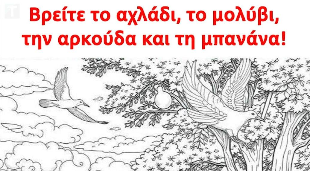 Όμως πίσω από αυτή την ήσυχη εικόνα κρύβεται μια πρόκληση — μπορείς να εντοπίσεις ένα αχλάδι, ένα μολύβι, μια αρκούδα και μια μπανάνα που έχουν «κρυφτεί» έξυπνα μέσα στο τοπίο;