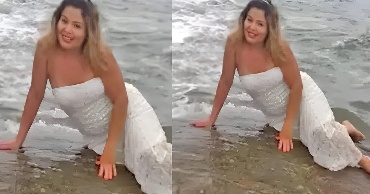 Ήμασταν στην παραλία και αποφάσισα να βγάλω μια φωτογραφία σε έναν βράχο που μου άρεσε, έγραψε. Δεν ήξερα ότι ο άντρας μου τραβούσε βίντεο. Καθώς πόζαρα, άρχισε να μου φωνάζει για το κύμα, αλλά πραγματικά δεν το περίμενα.