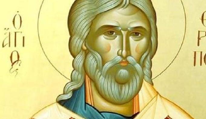 Μετά, έβαλε το αριστερό του χέρι πάνω στο κεφάλι μου και το δεξί του χέρι κάτω από το σαγόνι μου και απότομα μου σήκωσε το κεφάλι. Μου είπε: «Παιδί μου, είμαι ο Άγιος Θεράπων και με στέλνει σε εσένα η Παναγία, για να σε βοηθήσω. Από εδώ και στο εξής θα σε αναλάβω εγώ. Ό,τι θέλεις, σε εμένα θα έρχεσαι να το λες. Γιορτάζω στις 14 Μαΐου»!!