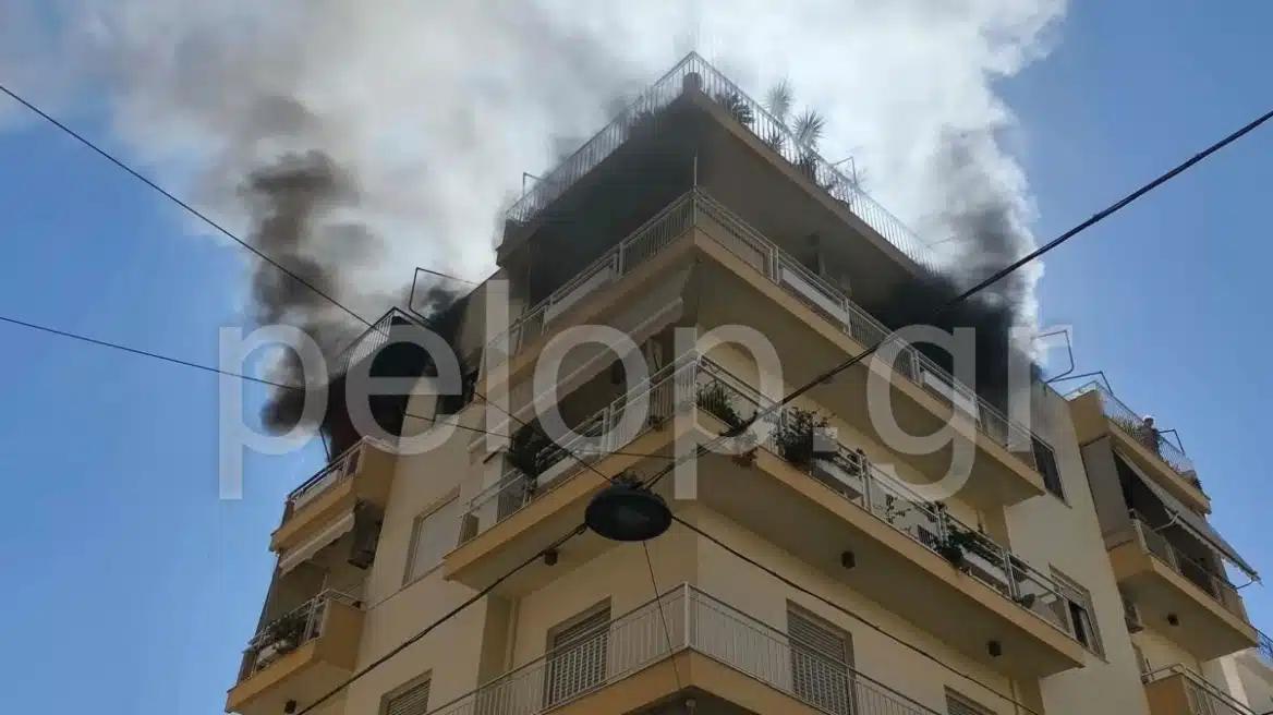 Η φωτιά εκδηλώθηκε σε διαμέρισμα στη συμβολή των οδών Ασημάκη Φωτήλα και Παναχαϊκού. Γρήγορα, ο καπνός εξαπλώθηκε στους ορόφους της πολυκατοικίας.