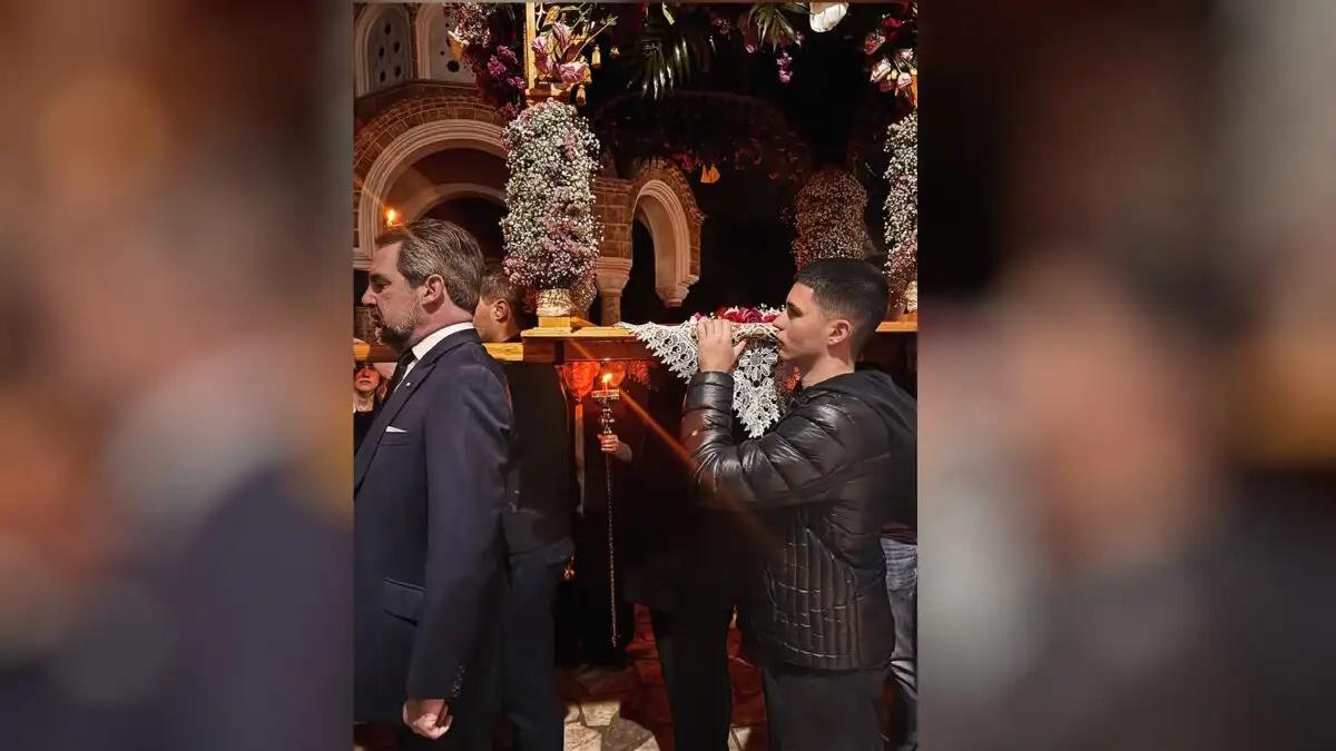 Στιγμές συγκίνησης βίωσε τη Μεγάλη Παρασκευή (10.04.2026) ο Νικόλαος Ντε Γκρες στην Εκάλη, όπου κράτησε τον Επιτάφιο σε κλίμα βαθιάς κατάνυξης. Δίπλα του είχε τον Γιώργο Τσαλίκη με τους γιους του τραγουδιστή.