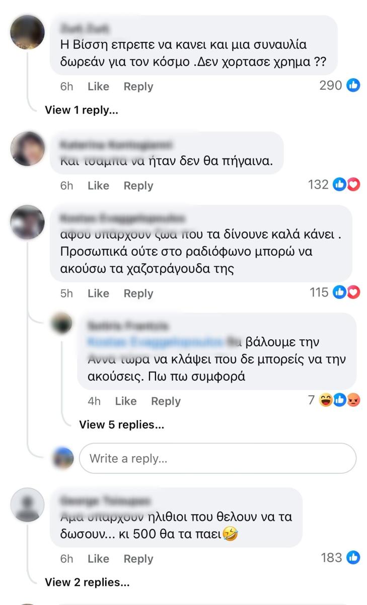 Σε βίντεο που ανέβασε μία φαν της Άννας Βίσση στο TikTok, η ίδια εκφράζει το δικό της παράπονο καθώς δεν θα μπορέσει να πάει στη συναυλία λόγω των υψηλών τιμών. Συγκεκριμένα, γράφει χαρακτηριστικά: «Κρίμα για την Βίσση που έχασε την φαν της αλλά Αννούλα 400 ευρώ δεν έχω αγάπη μου να σου δώσω. Τον βασικό παίρνω».