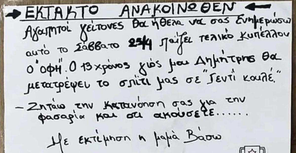 Ο 13χρονος σκοπεύει να κάνει το σπίτι… «Γεντί Κουλέ» για τον ΟΦΗ – Το viral σημείωμα της μαμάς